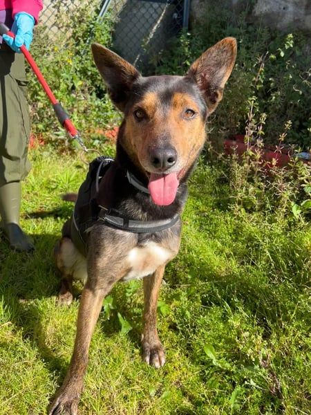 Zusammen mit meinem Freund „Gil“ verbringe ich die Tage im Freilauf. Wir kennen nichts anderes, wir sind füreinander da. Es ist ruhig hier, und genau das brauche ich – Ruhe, Verständnis und Geduld. Ich bin aufgeschlossen und habe mich auch schon streicheln lassen, obwohl ich anfangs etwas vorsichtig bin. An der Leine ziehe ich noch, aber mit der richtigen Führung lässt sich das sicher in den Griff bekommen. Ich brauche nur eine feste Bezugsperson und jemanden mit ein wenig Hundeerfahrung, um mir Sicherheit zu geben.