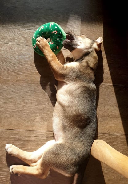 Burita ist Welpen typisch verspielt und aktiv. Wenn sie sich freut oder aufgeregt ist, flitzt sie gerne herum und erkundet ihre Umgebung. Im Haus ist sie etwas ruhiger und beschäftigt sich gerne mit ihren Kuschelspielzeugen. Draußen hingegen zeigt sie deutlich mehr Energie und liebt es, über Gras zu laufen, zu spielen und sich zu bewegen.