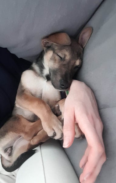 Eine junge Hündin, die an einem Dorfrand ausgesetzt wurde, fand Zuflucht bei einer Familie, die da ein Ferienhaus hatte. Ehe sich die Leute versehen konnten, gebar die Hündin 7 Welpen. Die Nachbaren drohten diese zu verjagen oder schlimmer und so wurden wir gebeten sie aufzunehmen. Die Hündin wurde kastriert und blieb da (ein anderer Nachbar war einverstanden sie während der Abwesenheit der Besitzer zu füttern) und die Welpen kamen in Pflegefamilien und suchen nun ein eigenes Zuhause.