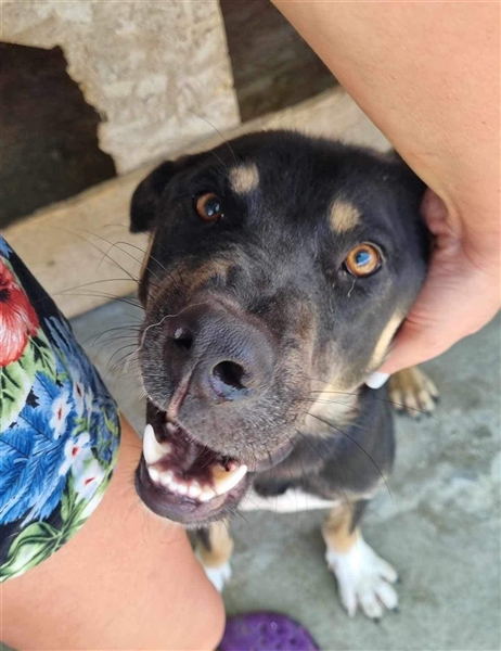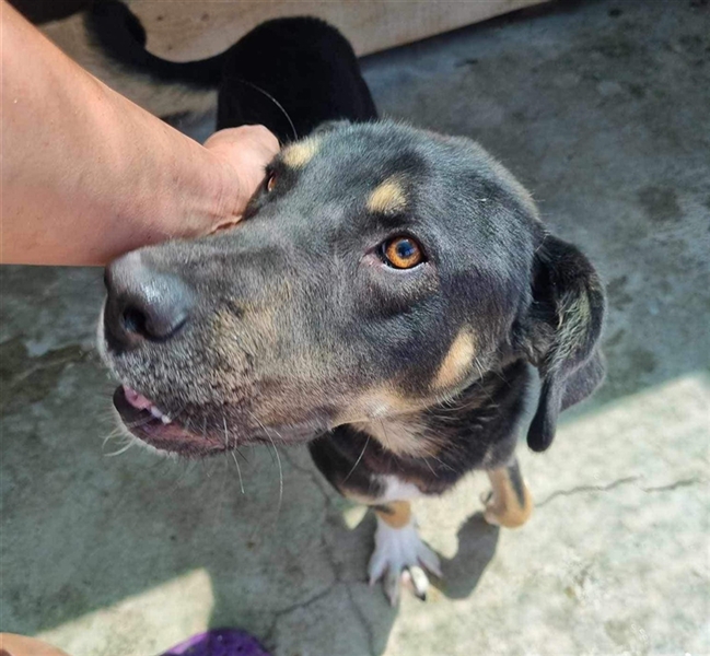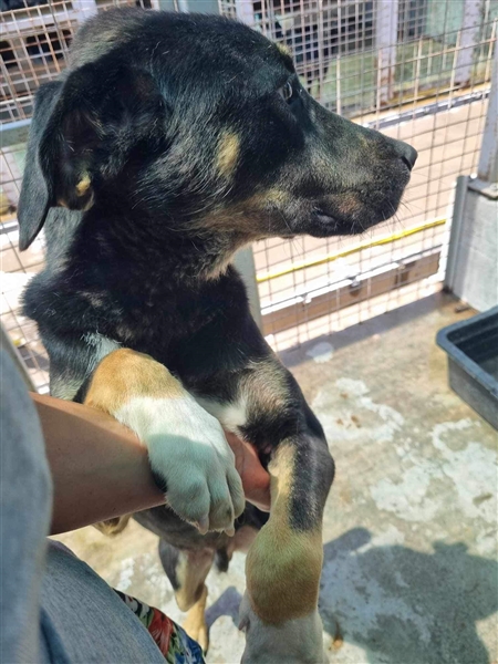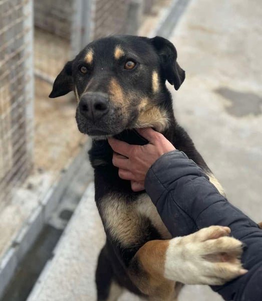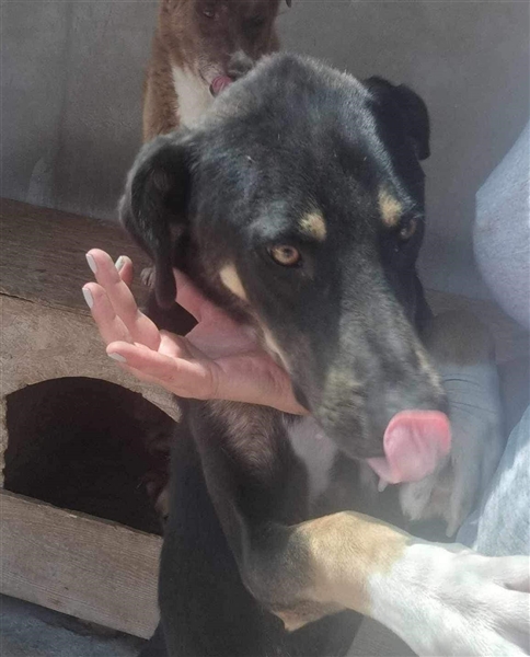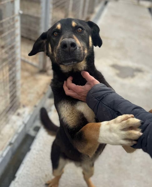 Er lebt aktuell mit einem älteren Rüden im Zwinger, mit dem er sich gut versteht. Kommen die Pflegerinnen zu ihnen, freut er sich über Streicheleinheiten und zeigt sich anhänglich und verschmust.