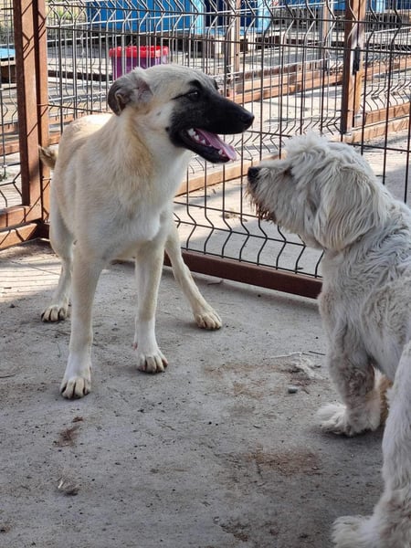Idefix lebt mit vielen anderen Welpen und Junghunden im Zwinger, er liebt es mit ihnen herumzualbern und zu toben. Wenn man den Zwinger betritt und die Rasselbande auf einen zugelaufen kommt, ist er sofort dabei. Er springt dann um einen herum und freut sich auf die Abwechslung. Sobald er aber alleine ist und man sich versucht ihm zu nähern, geht er erstmal ein paar Schritte zurück. Wenn man sich aber Zeit nimmt und sich langsam und behutsam nähert, überwiegt die Neugier. Man merkt, dass er noch nicht viele Berührungspunkte mit Menschen hatte, er hat sich aber dennoch gut tragen lassen. Für ihn suchen wir hundeerfahrene Menschen, welche die Hundesprache verstehen und die notwendige Zeit und Geduld haben, ihn an ein Leben im Haus mit Menschen zu gewöhnen. Ein stabiler, souveräner Zweithund wäre bestimmt von Vorteil, von ihm könnte er sich noch ein bisschen was abschauen und sich an ihm orientieren, es würde ihm bestimmt vieles erleichtern (kein Muss).