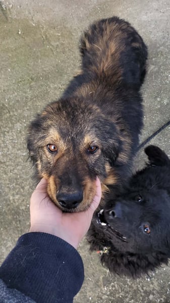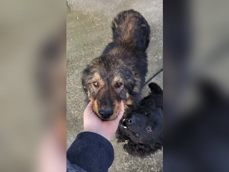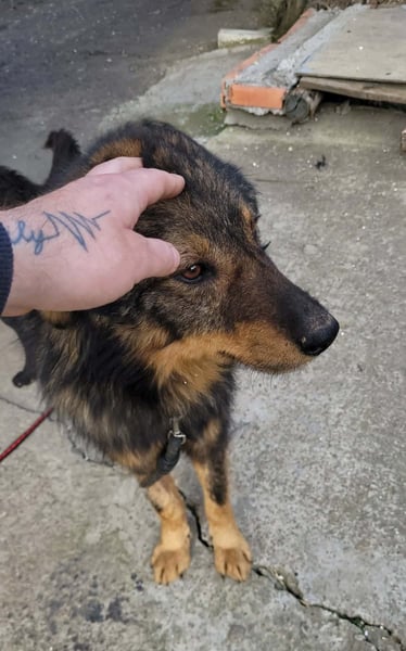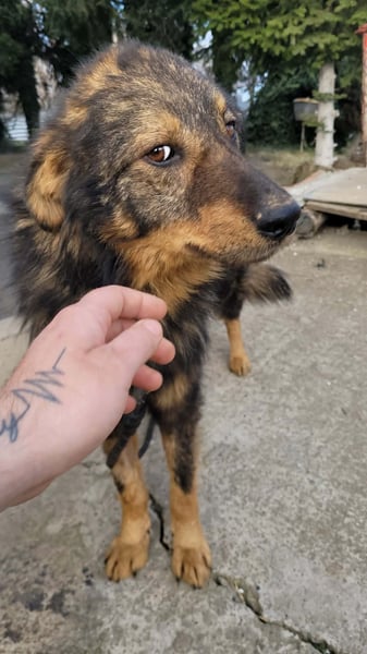 Als sie im Februar 2026 von Galati zum Flughafen nach Bukarest unterwegs waren, entdeckten sie ihn irgendwo im Nirgendwo am Straßenrand, völlig abgemagert, nur noch Haut und Knochen. Bruno wirkte erschöpft und hungrig, aber trotz allem freundlich und hoffnungsvoll. Natürlich hielten Laura und Meli an und gaben ihm etwas Hundefutter.
