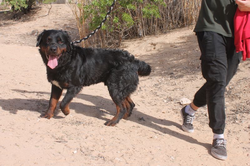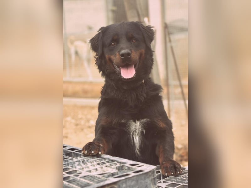 Unser Rottweiler-Mix ist ein sozialer, aktiver Hund mit lebhaftem Wesen. Er spielt gerne und zeigt sich im Umgang mit Menschen und anderen Hunden im Tierheim freundlich. Allerdings bringt er auch eine gewisse Dominanz mit, weshalb wir für ihn hundeerfahrene Menschen suchen, die klare Regeln setzen können und ihm mit Ruhe und Konsequenz Orientierung bieten.