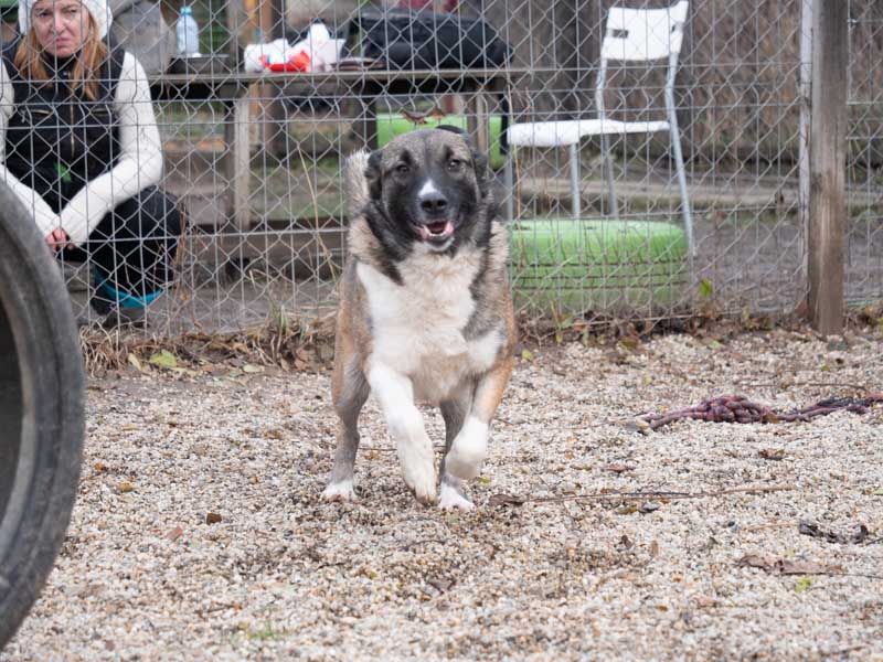 Lia lebte hier auf einem Hof und wie es hier nicht unüblich ist in einem Zwinger mit regelmäßigem Auslauf. Sie baute schnell eine Verbindung zu den zwei Pflegepersonen auf. Und es zeigte sich schnell, dass Lia es als ihre Aufgabe betrachtet, ihre Bezugspersonen genauso zu beschützen wie ihre Welpen.