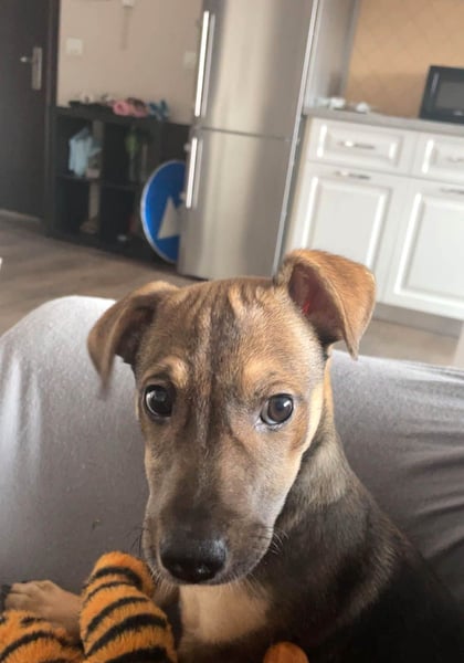 Burita ist Welpen typisch verspielt und aktiv. Wenn sie sich freut oder aufgeregt ist, flitzt sie gerne herum und erkundet ihre Umgebung. Im Haus ist sie etwas ruhiger und beschäftigt sich gerne mit ihren Kuschelspielzeugen. Draußen hingegen zeigt sie deutlich mehr Energie und liebt es, über Gras zu laufen, zu spielen und sich zu bewegen.
