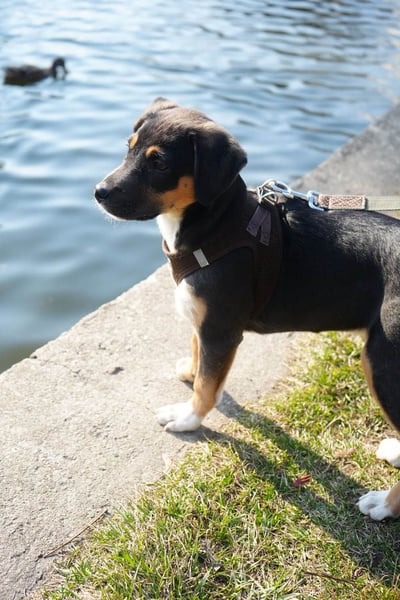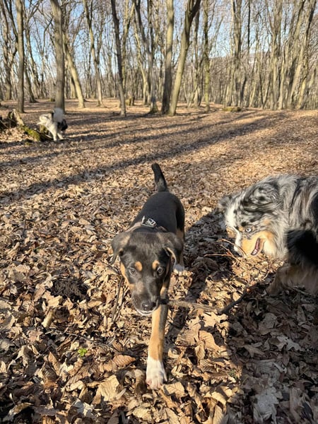 Freilauf wurde bisher nur im Wald getestet und er kam zuverlässig auf Rückruf zurück. Regelmäßige Bewegung ist für Boston wichtig, da er körperliche Aktivität braucht, um sich ausgeglichen und wohlzufühlen. Im Training steht Boston noch am Anfang. Er beginnt gerade, seinen Namen zu verstehen, und grundlegende Kommandos wie „Sitz“ werden mit viel Motivation geübt. Besonders gut funktioniert das Lernen mit kleinen Leckerlis als Belohnung.