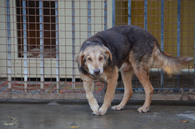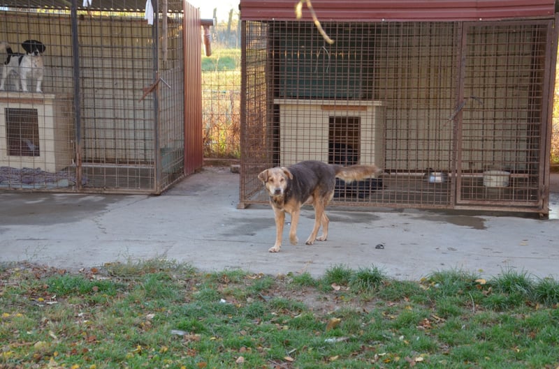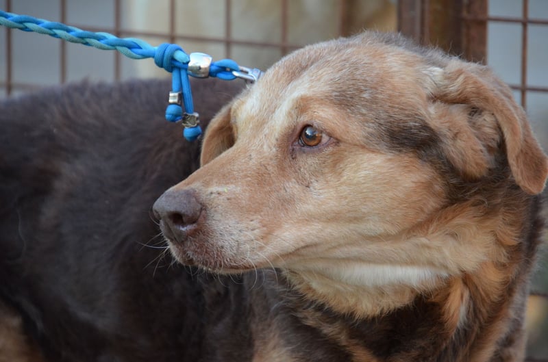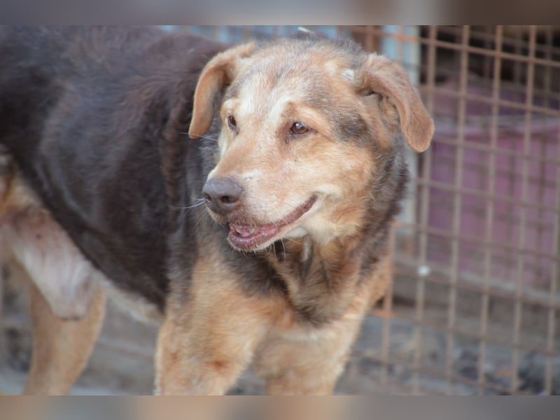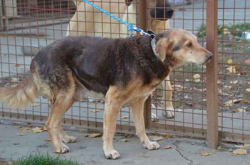 Csezar kam Mitte Juli 2025 in unser Partnertierheim Koborka in Mezötúr / Ungarn, nachdem seine Besitzerin verstorben ist. Bis dahin lebte er auf dem Hof, wo er zwar regelmäßig Futter bekam, aber kaum menschliche Zuwendung oder Nähe erfahren durfte.