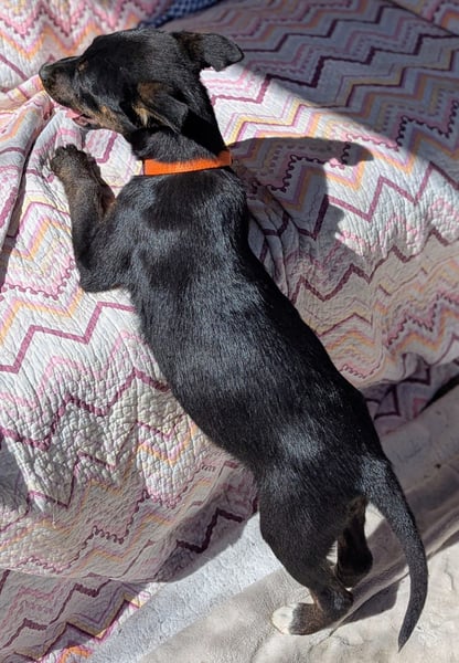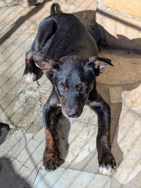 Wir kommen ursprünglich von einem Jäger, dem es egal ist wie oft sich die Hündinnen, die eh draußen leben, vermehren. Diskussionen sind zwecklos, aber die Behörden wurden eingeschaltet. Zum Glück haben wir jetzt ein warmes Plätzchen bei unserer Pflegestelle und können uns erholen und erste Sozialisierung erfahren.