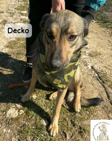 Decko ist ein verträglicher, freundlicher Hund, der Menschen kennt und den Kontakt zu ihnen gewohnt ist. Mit Geduld, Ruhe und liebevoller Begleitung wird er sich sicher gut in ein neues Leben einfinden.