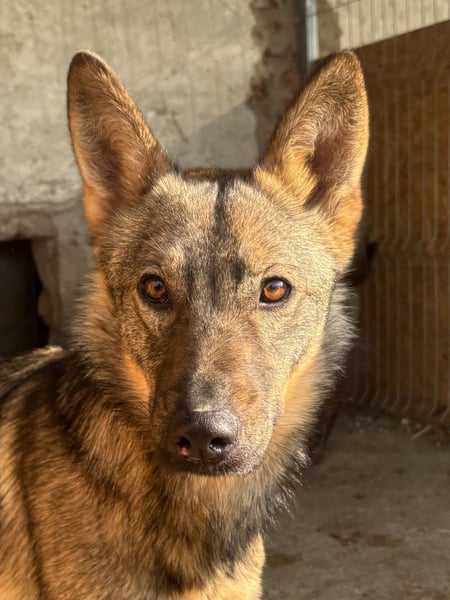 Der Rüde gehört zu den 140 Hunden und 30 Katzen, die im Ort Finta Mare bei Floriela in Rumänien Zuflucht gefunden haben. Da es nicht genügend Platz gibt, müssen die Tiere meist Wochen oder Monate in engen, kleinen Boxen verbringen.