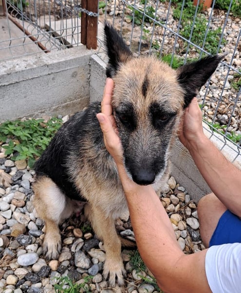 Gut möglich, dass die Hündin die Aufgabe hatte ungebetene Besucher abzuschrecken und dazu in einem Hof oder sogar an ser Kette gehalten wurde - mit gerade genug Futter, um nicht zu verhungern.