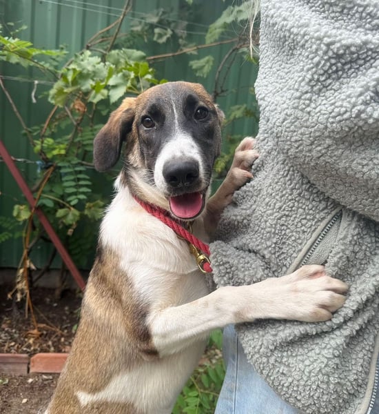 Hezöl ist eine wunderschöne, junge Hündin, die trotz ihres schweren Starts ins Leben mit ihrer fröhlichen, aufgeweckten und liebevollen Art sofort die Herzen berührt. Sie wurde im März 2025 im ungarischen Tierheim geboren, nachdem ihre Mutter Harina hochträchtig als Beschlagnahmung ins Shelter kam. Gemeinsam mit ihren Geschwistern durfte Hezöl in Sicherheit und mit viel Mutterliebe aufwachsen – ein kleiner Lichtblick in einer sonst nicht einfachen Umgebung.