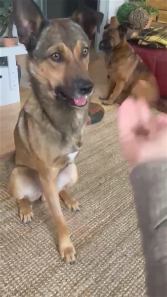 Maksim hat gelernt beim Verlassen und Einkehren in die Wohnung zu warten bis man es ihm erlaubt. Im Garten läuft er gut „bei Fuß“ - draußen ist er dafür oftmals noch zu abgelenkt. Sitz kann er besonders gut und hört auch auf Stopp und Warte. An der Leine läuft er gut - Ziehen wurde ihm fast