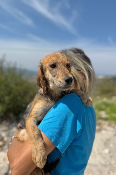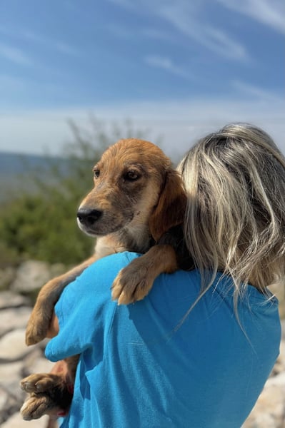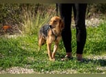 Aimi ist ein Jagdhundmix und wird vermutlich mittelgroß. Sie freut sich über den Besuch einer passenden Hunde(halter)schule, in dem ihr gemeinsam das Hunde-Einmaleins lernen (oder auffrischen) und euch noch besser kennenlernen könnt.