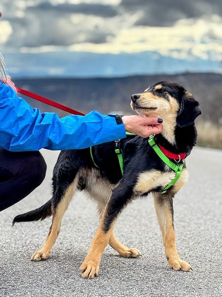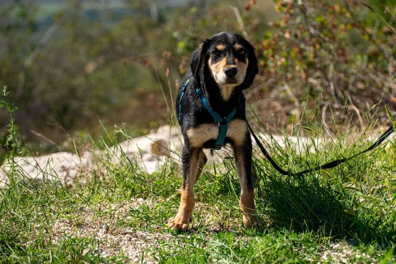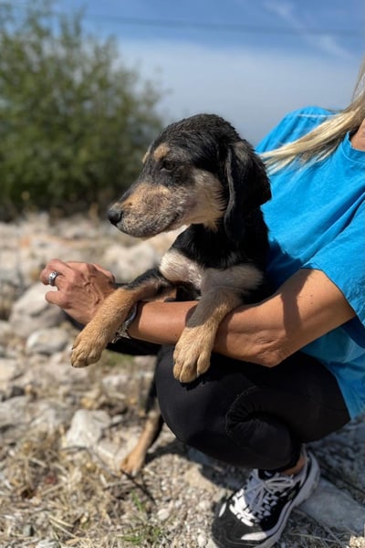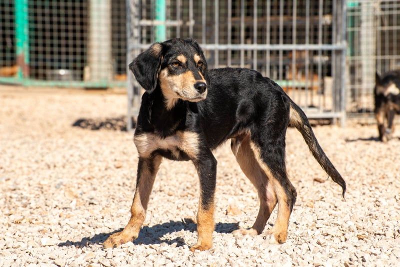 Franzl ist ein Jagdhundmix und wird vermutlich mittelgroß. Er freut sich über den Besuch einer passenden Hunde(halter)schule, in dem ihr gemeinsam das Hunde-Einmaleins lernen (oder auffrischen) und euch noch besser kennenlernen könnt.