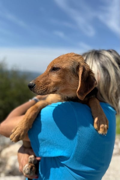 Elara ist ein Jagdhundmix und wird vermutlich mittelgroß. Sie freut sich über den Besuch einer passenden Hunde(halter)schule, in dem ihr gemeinsam das Hunde-Einmaleins lernen (oder auffrischen) und euch noch besser kennenlernen könnt.