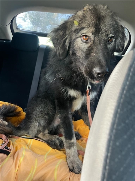 Phil fanden wir bei der Rückfahrt unserer Fütterungsrunde auf einer Landstraße, irgendwo im Nirgendwo, Kilometer weit weg von der nächsten Siedlung. Er hatte eine Ohrmarke und wir fanden heraus, dass er aus dem Gemeinde-Shelter kommt. Vermutlich wurde er adoptiert und dann einfach wieder ausgesetzt. Er ist so liebesbedürftig und hätte ohne menschlichen Kontakt wohl nicht überlebt.