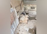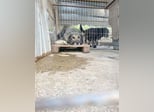 Seitdem liegt es auf einer Palette, dass einzige was in diesem Gefängnis steht. Traurig schaut er jeden Tag durch die Gitter und wird von Tag zu Tag trauriger und fängt an sich aufzugeben.