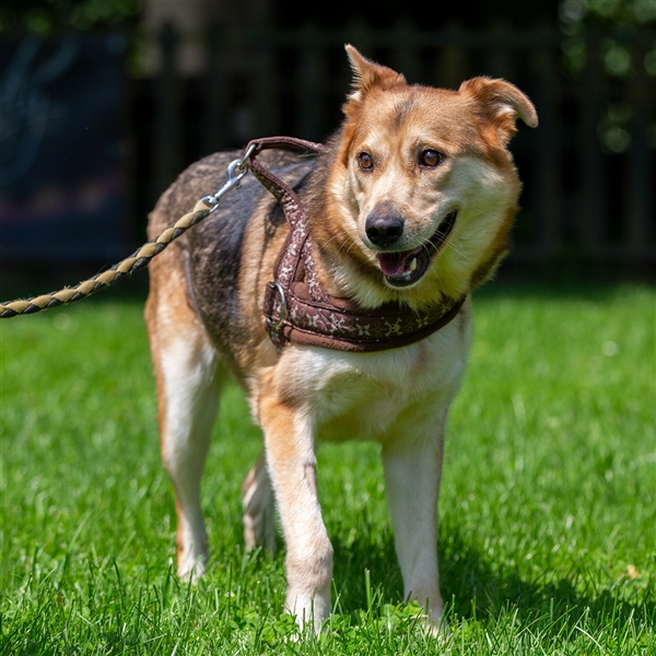 Ines ist eine leider schon lange zu Unrecht übersehene wunderbare Hündin. Lebensfroh, freundlich, aufgeschlossen, Menschen liebend – das sind ihre Attribute. Außerdem ist sie sehr lernwillig und aufmerksam. Sie kennt das Laufen an der Leine und zeigt sich unterwegs entspannt im Umgang mit ihren Artgenossen.