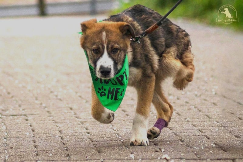 Valentin wurde im Februar 2025 im Tierheim Ari Paws aufgenommen, nachdem er zuvor auf der Straße gelebt hatte. Anfangs vermuteten wir, dass er angefahren worden war. Untersuchungen ergaben jedoch, dass er bereits mit der Fehlstellung am Bein geboren wurde. Bei seiner Aufnahme war er stark abgemagert, litt an Zwingerhusten und Giardien und war beinahe apathisch. Seit seiner Rettung wird er tierärztlich behandelt, liebevoll aufgepäppelt und lebt inzwischen in einer Pflegestelle in 75443 Ötisheim. Dort zeigt er sich zunehmend aktiver und agiler, hat Muskulatur aufgebaut und sich gut eingelebt. Aktuell ist Valentin 63 cm groß und wiegt rund 20 kg (Stand: 26.10.2025).