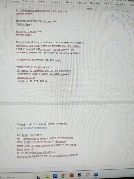Ein Allergietest wurde bei Jax durchgeführt. Dieser ist in der Bildergalerie beigefügt.