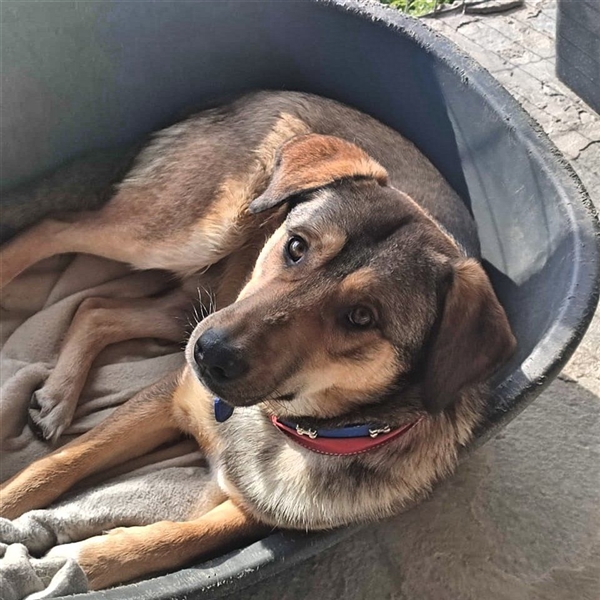 Gino wurde im Juli 2021 von einer Einzelhändlerin aus der nahe gelegenen Kreisstadt entdeckt. Mindestens die vergangenen sechs Monate verbrachte der junge Rüde als Straßenhund im Zentrum der Kleinstadt. In den besonders kalten Januarnächten durfte Gino im Laden der Geschäftsfrau verbringen. Da die Dame Gino aber nicht behalten kann, brachte sie den jungen Mann nun in die Hundepension zu Eva. Gino wünscht sich jetzt natürlich einen Menschen/eine Familie welche/r sich für ihn begeistern kann.