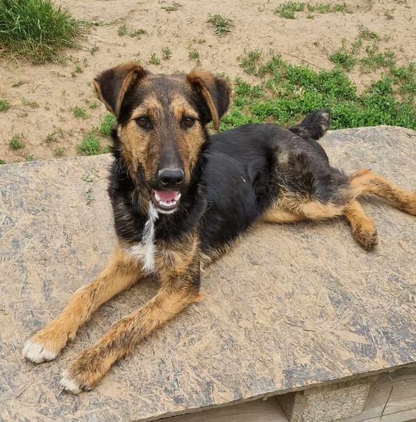 Am liebsten spielt Dexter zur Zeit mit seinen Geschwistern. Aber auch mit den anderen Hunden im Tierheim hat er keine Probleme, hält sich aus Trubel aber noch raus.