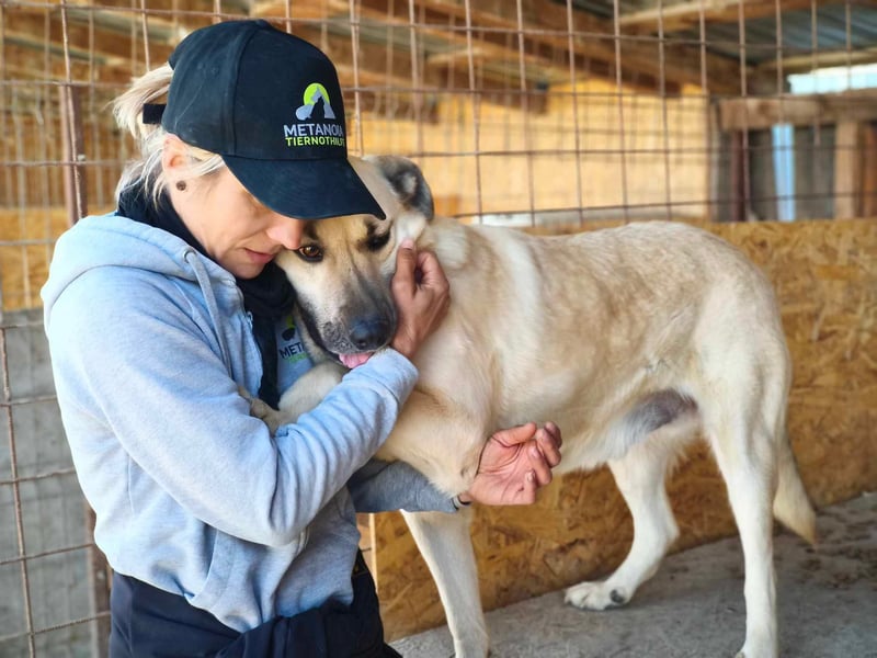 Jack fiel unseren Kollegen bei ihrem Besuch im städtischen Shelter Ecosal im August 2024 auf. Er genoss die kurze Aufmerksamkeit, das Streicheln so sehr. Sie beschlossen, ihn rauszuholen und in einem großen privaten Tierheim unterzubringen, wo er sich nun einen Zwinger mit einem weiteren Rüden und einer Hündin teilt.