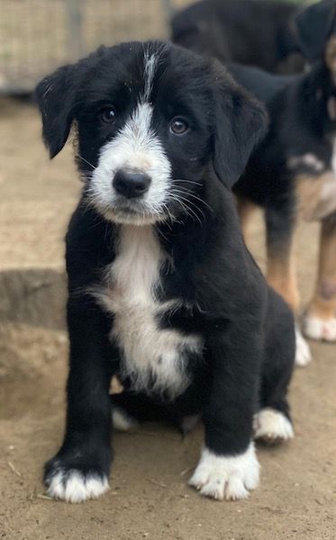Kasimir ist ein wahnsinnig knuffiger Hundejunge in Schwarz und Weiß. Der Farbverlauf in seinem Gesicht, an seiner Brust und den Pfoten ist dabei besonders niedlich. Da Kasimir später aber mal ein großer Rüde werden möchte, bedarf es mehr als die Fähigkeit, ihn ausgiebig kuscheln zu können. Auf seiner Pflegestelle konnte er zwar schon einiges kennenlernen – darunter auch Katzen – allerdings ist ihm das Welpen-ABC noch fremd. Für ein entspanntes Miteinander sollte daher gemeinsam daran gearbeitet werden. Auch der Besuch einer gut gewählten Hundeschule kann hierbei unterstützen. Wie es sich für einen jungen Hund gehört, zeigt sich Kasimir aktuell sehr freundlich, verspielt und aufgeweckt. Ebenso kommt er vor Ort gut mit seinen Geschwistern und mit anderen Artgenossen zurecht. Er ist ein wirklich toller Kerl, wie wir finden. Wenn Sie Kasimir gerne einen liebevollen Platz in Ihrer Familie schenken möchten, freuen wir uns schon auf Ihre Anfrage!