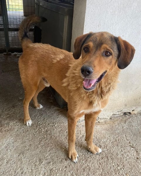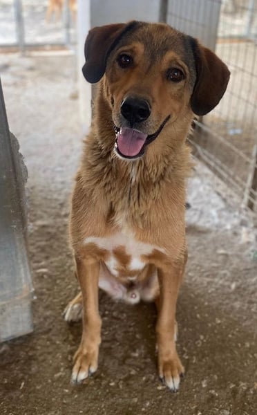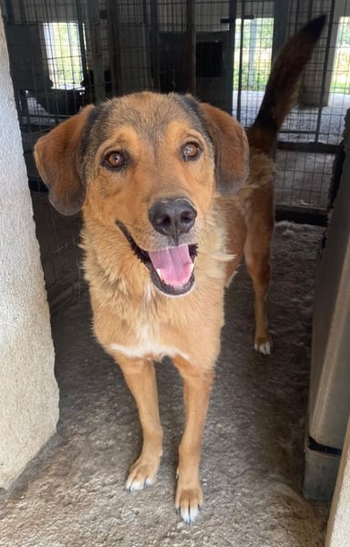 Mikosch lebte, seitdem er ein Welpe war, bei einer Familie. Als unsere Helferin Iliana unterwegs war um einen anderen Hund einzusammeln, kam die Familie auf sie zu und bettelte, ob wir den Rüden aufnehmen können. Mikosch lebte dort ständig an der Leine und durfte nie Freilauf genießen bzw. spazieren gehen. Wir nahmen den hübschen Kerl auf und seitdem lebt er im städtischen Tierheim in Serres und wartet auf seine Herzensmenschen.