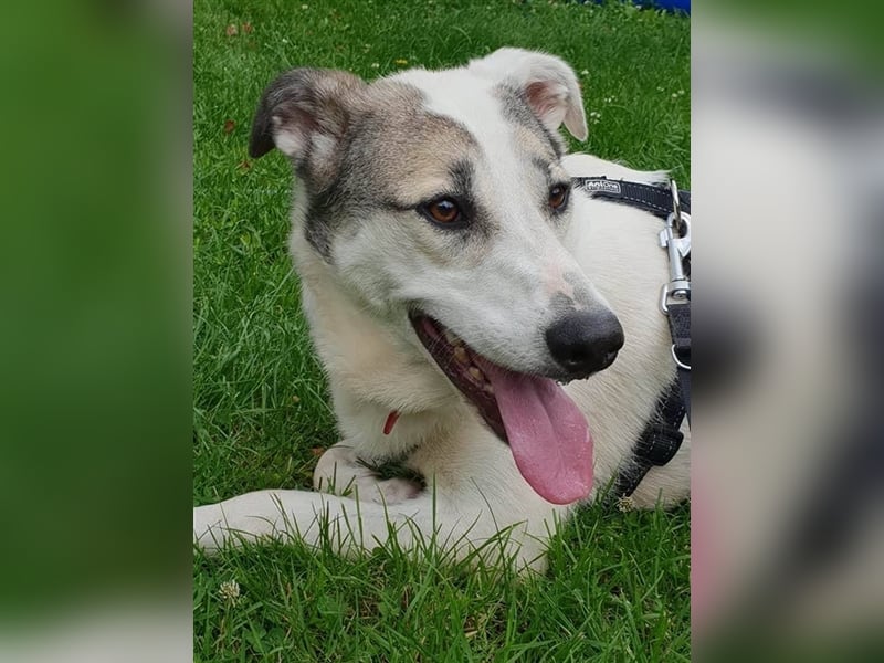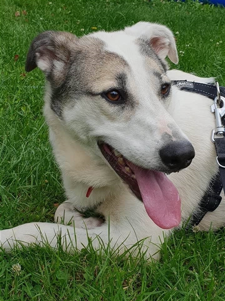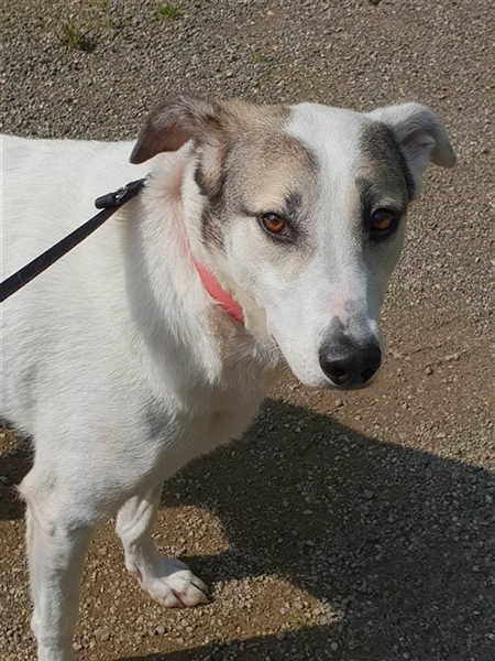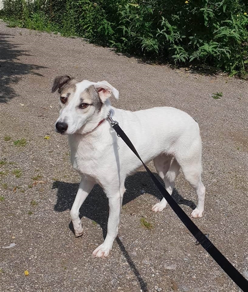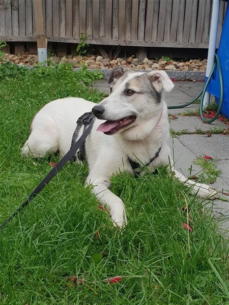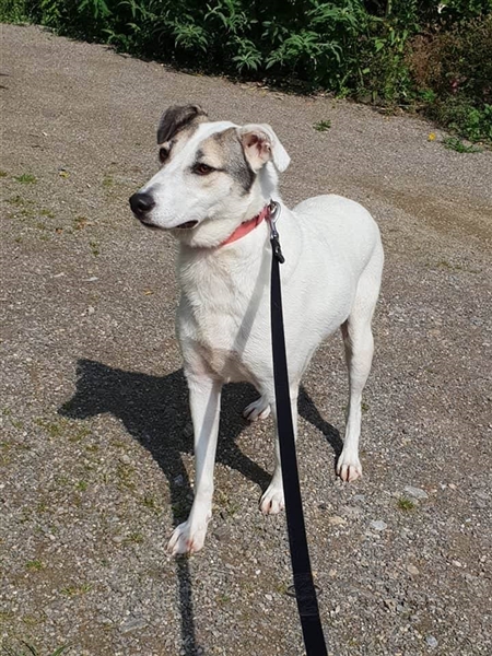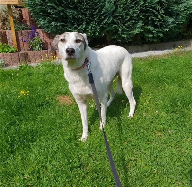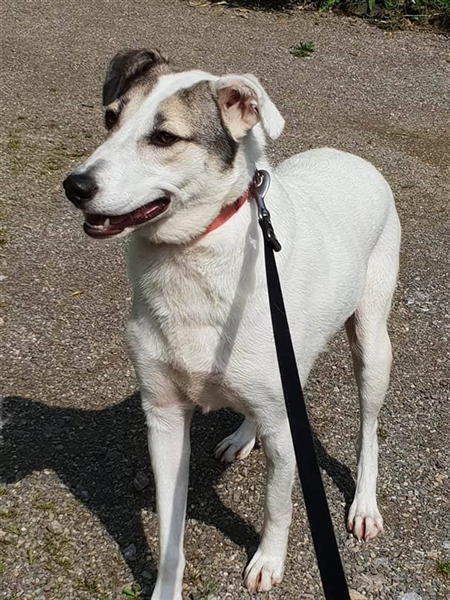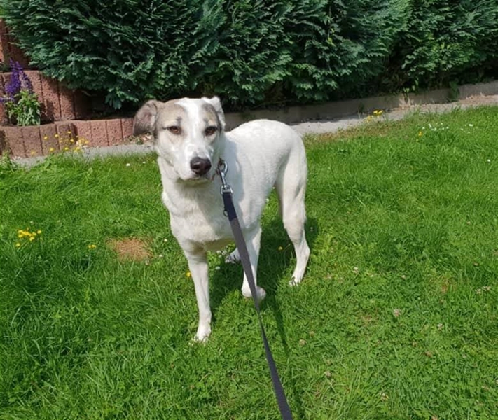 Ihr Phänotyp lässt Herdenschutzhundanteile vermuten, ihr Verhalten wirkt momentan aber nicht so. Aufgrund ihrer Vorsicht sollten Interessenten verständnisvoll und ein wenig hundeerfahren sein.