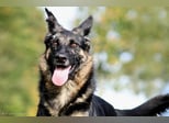 Ich bin DONNA, eine 3-jährige Deutsche Schäferhündin, und ich wollte dich fragen, ob du mit mir kuscheln willst? Ist auch umsonst! Also, nicht ganz, weil ich würd im Gegenzug dann ein Körbchen bei dir und ein bisschen Futter nehmen. Ich bin eigentlich total umgänglich, die meisten Hunde mag ich, auch wenn ich manchmal pöbeln muss, wenn ich im Rudel unterwegs bin. Aber das machen Hunde meiner Rasse, sagt meine Pflegestelle. Ich mag Hündinnen nicht so gerne wie Rüden, also wäre es schön, wenn in unserem neuen Zuhause am besten noch keine Hündin wohnt. Ein Rüde ist okay, ich nehm aber auch voll gerne die alleinige Aufmerksamkeit. Dann pöbel ich auch nicht, versprochen! Ach und du müsstest schon auch was von meiner Rasse verstehen und in der Lage sein, mir mal ne Ansage machen zu können, sonst fühle ich mich nämlich nicht geführt und übernehme selbst die Verantwortung. Das heißt dann, dass ich auch selbst entscheide, welche Hunde, Menschen oder andere Tiere gefährlich sind und ob ich dich vor denen beschützen muss. Da müsstest du mir schon die Sicherheit geben können, dass du mich händeln kannst. Also meine Pflegestelle glaubt, dass ich in Rumänien schon mal im Schutzdienst und an einer Nutztierherde gearbeitet hab. Aber ob das stimmt, verrate ich nicht. Ich weiß auf jeden Fall, wie Arbeiten geht und hab irre Spaß da dran, ich will das unbedingt machen. Hätte auch voll Spaß an Agility oder Canicross oder so, irgendwas aktives. Oder wir gehen einfach ganz weit wandern. Ich kenn übrigens Pferde, Hühner, Ziegen, Katzen und natürlich andere Hunde. Mit meinem Pflegebruder verstehe ich mich bestens. Naja, ich nerve ihn manchmal ziemlich doll, weil ich dominanter bin als er und mir dann einfach seine Sachen schnappe. Das mach ich auch mit den Sachen von meiner Pflegestelle, am liebsten Kleidung, die nach Mensch riecht, das gibt mir ein Gefühl von Sicherheit, wenn ich alleine bin. Paar Stunden alleine kann ich schon, anfangs heule ich rum, aber das legt sich schnell und dann chill ich einfach meine Base, nachdem ich das Haus geplündert hab. Aber irreversibel kaputt gemacht hab ich noch nix. Und stubenrein bin ich auch! Und anhänglich, eher kontrollierend. Boah, ich liebe Bauchkraulis! Und Schmeckies. Und Schlafen. Aber ich weiß nicht, warum Krankenwagen heulen, heule dann immer trotzdem mit. Das macht schon ein bisschen Spaß. Dafür stehe ich sogar ausm Schlaf auf tagsüber. Ach ja! Kinder: die sollten schon größer sein, wenn du welche hast. Diese hektischen Bewegungen animieren mich zum Rangeln und ich will niemandem weh tun, wenn ich im Übermut mal zu aktiv bin. Außerdem jage ich alles, was ganz schnell wegrennt. Also ich meine jetzt Kaninchen, Katzen, Eichhörnchen und so. Fahrräder und Jogger nicht. Aber ich weiß nicht, ob ich nicht auch Kindern hinterher rennen würde, deshalb bitte größere Kinder, ok? Ja, ich glaub, du kennst mich jetzt ganz gut. Also, wann darf ich bei dir einziehen?