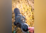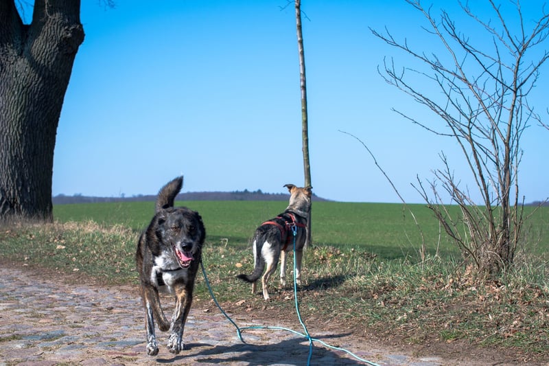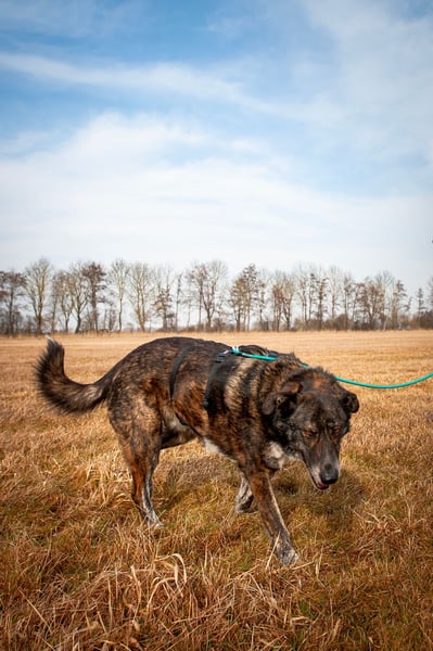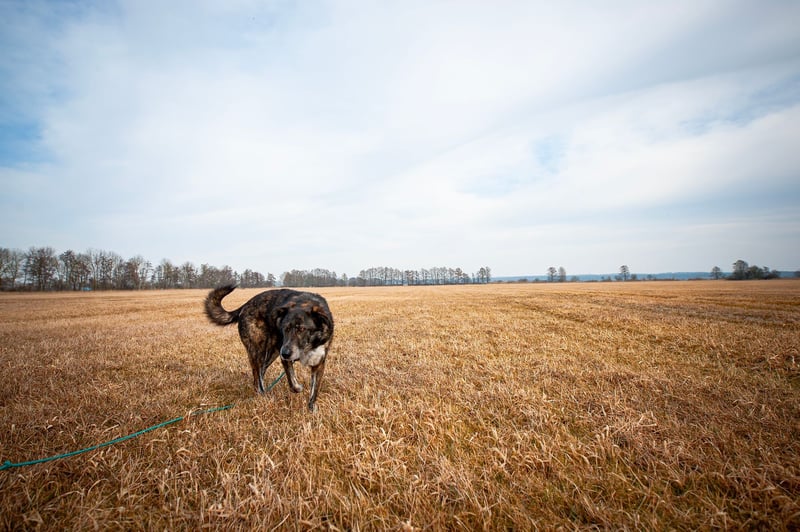 Im Außenbereich ist Rudy aufmerksam und neugierig gegenüber seiner Umwelt. In der ruhigen, ländlichen Umgebung, in der er derzeit lebt, läuft er entspannt an der Leine. Autos, LKWs und Fahrräder nimmt er gelassen wahr und orientiert sich zuverlässig am Menschen. Auch städtischen Umgebungen begegnet er interessiert und lässt sich gut führen. Mit jedem Ausflug wird er sicherer, gewinnt an Gelassenheit und lernt zunehmend, Relevantes von Unwichtigem zu unterscheiden.