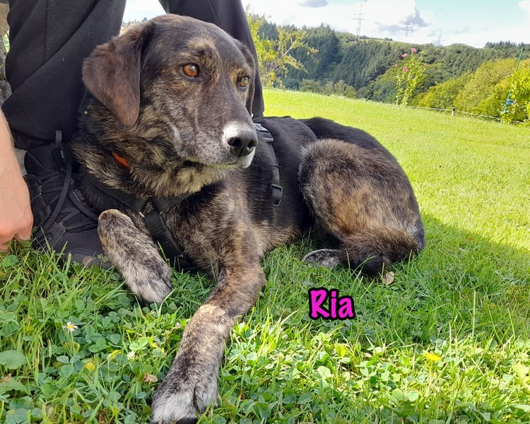 Ria - eine liebevolle, kluge Hündin sucht dringend ihr Zuhause für immer oder eine Pflegestelle! Ria ist nicht nur wunderschön, sondern auch ein echtes Herzchen. Sie ist sehr intelligent und lernt schnell – erste Grundkommandos wie „Sitz“ kennt sie bereits. Sie hat eine neugierige und lebensfrohe Art und liebt es, draußen unterwegs zu sein. Spaziergänge gehören zu ihren größten Freuden. Menschen gegenüber zeigt sich Ria besonders anhänglich und verschmust. Sie liebt Streicheleinheiten und genießt jede Zuwendung. Im Alltag ist sie eine angenehme Begleiterin: Sie ist stubenrein und meldet sich zuverlässig, wenn sie nach draußen muss. Im Haushalt verhält sie sich ruhig, kennt verschiedene Alltagsgeräusche, schläft nachts brav durch und macht nichts kaputt. Auch ihre Selbstständigkeit ist bemerkenswert – im Haus bewegt sich Ria angstfrei und findet gut zur Ruhe. Treppen läuft sie ebenfalls problemlos. Natürlich gibt es noch Dinge, die sie lernen möchte: An der Leine läuft Ria schon, benötigt jedoch noch Übung. Im Kontakt mit anderen Tieren braucht sie weiterhin Training sowie eine konsequente, aber liebevolle Führung. Mit der richtigen Anleitung lässt sie sich gut regulieren und wird sich zu einer treuen Begleiterin entwickeln, die ihre Menschen durchs Leben begleitet. Wenn Sie sich eine verschmuste, kluge und lebensfrohe Gefährtin wünschen, die mit etwas Training zu einer wahren Traumhündin heranwächst, dann freuen wir uns sehr, wenn Sie Kontakt mit uns aufnehmen!