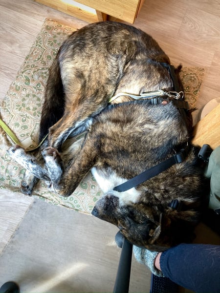 Rudy ist ein lebhafter und zugleich sehr verschmuster Hund, der große Freude an Bewegung hat und mit etwas Anleitung ebenso gut zur Ruhe findet. Das Alleinbleiben wurde bereits behutsam aufgebaut und funktioniert inzwischen entspannt für bis zu eine Stunde. Er zeigte sich vor allem zu Beginn tendenziell wachsam und meldete gelegentlich, wenn er draußen etwas wahrnam. Durch eine kurze Ansprache lässt er sich jedoch gut aus dieser selbst übernommenen „Verantwortung“ lösen, sodass er diese über die letzten Wochen immer mehr abgegeben hat. Mittlerweile bleibt er z.B. entspannt und ruhig, wenn er Geräusche außerhalb des Hauses wahrnimmt. Gleichzeitig ist uns wichtig zu betonen, dass er trotz Anleitung diese Eigenschaft grundsätzlich mitbringt.