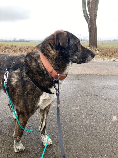 In seinem aktuellen Zuhause mit zwei Bezugspersonen und einer weiteren Hündin hat sich Rudy innerhalb kürzester Zeit gut eingelebt und als ausgesprochen anpassungsfähig erwiesen. Zwar hat er seine ersten Lebensmonate bereits in einem häuslichen Umfeld verbracht, lebte anschließend jedoch vergleichsweise reizarm im Tierheim. Entsprechend standen die ersten Wochen ganz im Zeichen der Gewöhnung an neue Eindrücke und Abläufe – etwa Begegnungen mit Menschen im Alltag, das Spazierengehen und das Einfinden in klare, verbindliche Strukturen im Zusammenleben. Mit der richtigen Anleitung konnte Rudy anfänglich ungewohnte und für ihn schwer einschätzbare Situationen schnell bewältigen. Seine Fortschritte waren dabei kontinuierlich und von Tag zu Tag deutlich erkennbar. Was Rudy auszeichnet, ist seine Lernfreude. Er ist hochmotiviert, kopfmäßig gefordert zu werden, lernt schnell und lässt sich sehr gut motivieren.
