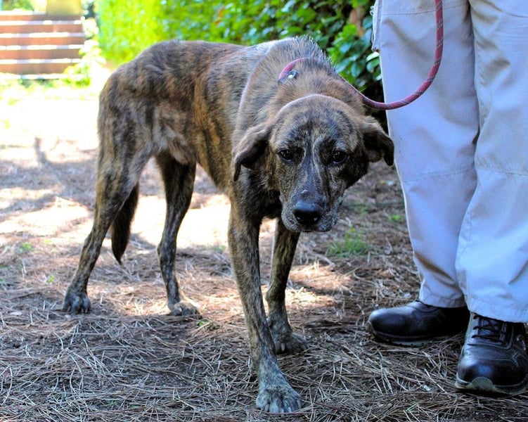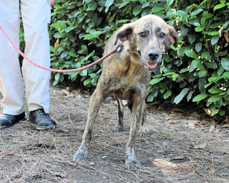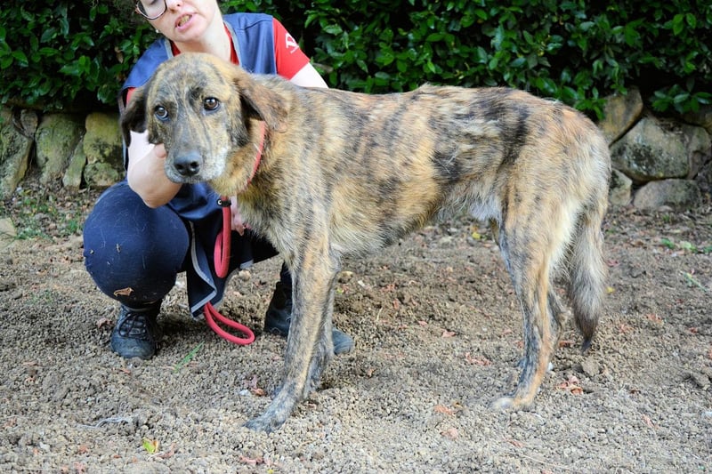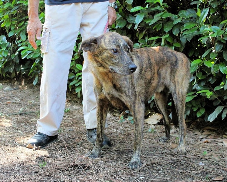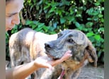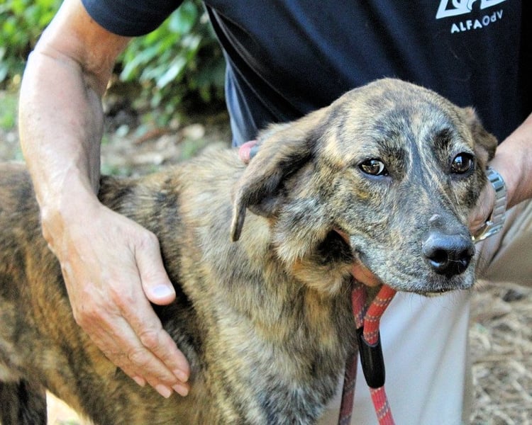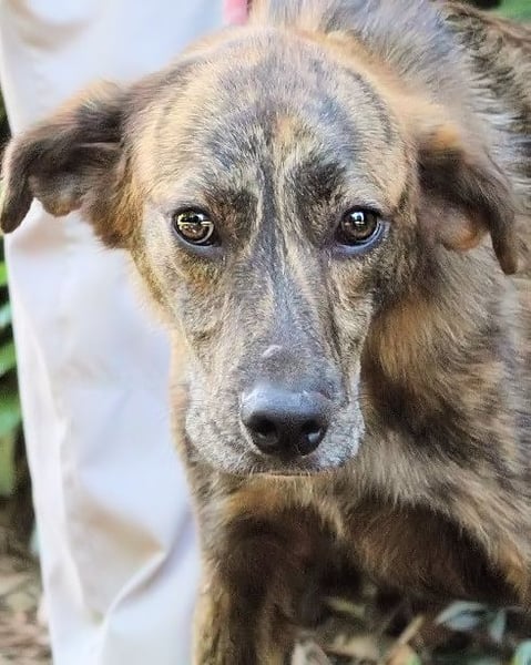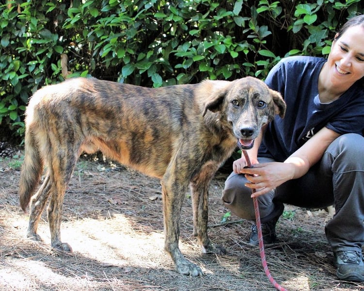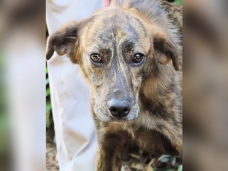 Ulick ist sehr dünn. Sein schmaler Körper erzählt von einem Leben, das ihm bisher wenig gegeben hat: kein weiches Kissen, kein voller Napf, keine streichelnde Hand, kein aufmunterndes Wort. Auch das Gehen an der Leine ist ihm noch fremd. Wie auch? Wer hätte es ihm beibringen sollen? Und doch glauben wir an ihn. Denn unter dem gestromten Fell, hinter dem vorsichtigen Blick steckt mehr. Eine Seele, die noch nicht aufgegeben hat. Ein Hund, der bereit sein könnte zu lernen, zu vertrauen – wenn nur endlich jemand kommt, der ihn sieht. Vielleicht jemand wie Sie?