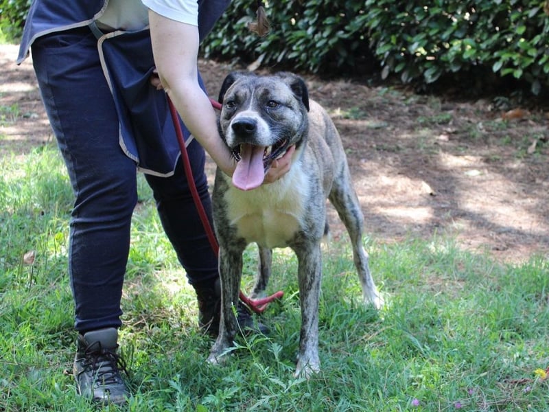Die mit uns befreundeten Tierschützer, die Fionella vor kurzem das erste mal besuchen durften, konnten die Hündin an jenem Tag leider nicht probeweise mit einem Artgenossen zusammenbringen. Aber sie durften sie nichtsdestotrotz für einen Moment auf die Wiese bringen und feststellen, dass die große Hübsche zu Menschen sehr lieb und vertrauensseelig zu sein scheint. Und dass sie schon ziemlich gut an der Leine gehen kann. Vielleicht hatte Fionella einmal ein Zuhause, in welchem sie ein paar Grundregeln des Zusammenlebens lernen durfte und dieses Wissen gespeichert hat. Dies ist allerdings nur eine Vermutung, über ihre Vergangenheit ist uns leider nichts bekannt.