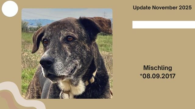 Die nette, menschenbezogene Hündin wünscht sich ihre Herzensmenschen, die ihr die Zeit und Zuwendung schenken können, die sie verdient. Geduldig wartet sie darauf, endlich von ihren Menschen entdeckt zu werden und Teil einer Familie zu werden. Menschen, die eine sanfte und entspannte Begleiterin suchen und mit ihr gewiss eine Freundin fürs Leben finden.