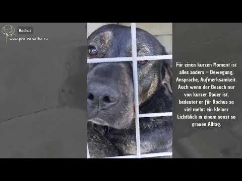 Ein großer Hund, ein lieber Hund, ein sozialer Hund, ein sehr hübscher Hund, ein relativ junger Hund, kurz: ein wunderbarer Hund. Aber das erste, was auffällt, wenn man Rochus ansieht, sind seine traurigen Augen. Flehend, bittend, gleichzeitig schon etwas resigniert. Auf einen Ausweg aus einer fast ausweglosen Situation hoffend, auf die Erlösung aus diesem Albtraum, auf ein kleines Wunder. Das Wunder nämlich, dass ein Mensch, DER Mensch, Rochus entdeckt, sich in ihn verliebt, das Potenzial in dieser Wundertüte entdeckt und ihn zu sich holt. Happy End, auf immer und ewig.