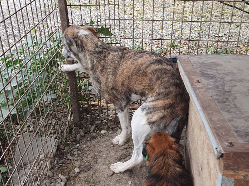 Maja ist eine wunderschöne, hell gestromte Hündin und lebt mit vielen kleinen Hunden in einem Zwinger – und obwohl sie körperlich die größte ist, wird sie sofort attackiert, sobald sie ihre Hütte verlassen möchte. Maja ist vollkommen überfordert mit der Situation. Sie wirkt verunsichert und zurückhaltend, zeigt sich sehr unterwürfig und scheint kaum Selbstvertrauen zu besitzen. Sie braucht dringend ein Umfeld, in dem sie zur Ruhe kommen und langsam lernen darf, dass sie sich nicht verstecken muss. Ein Zuhause mit klaren Strukturen, viel Geduld und liebevoller Führung wäre für sie der erste Schritt in ein besseres Leben.