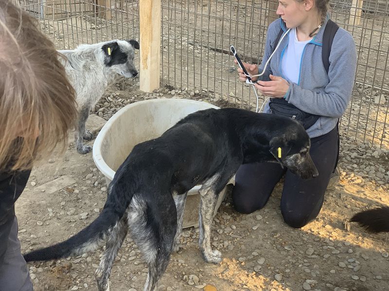 Er wird vor der Ausreise auf gängige Krankheiten per Schnelltest getestet (Ehrlichiose, Leishmaniose, Babesiose, Filarien, Anaplasmose, Borreliose)