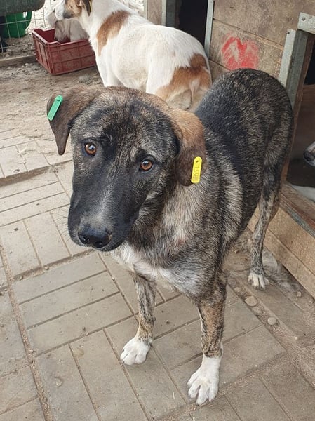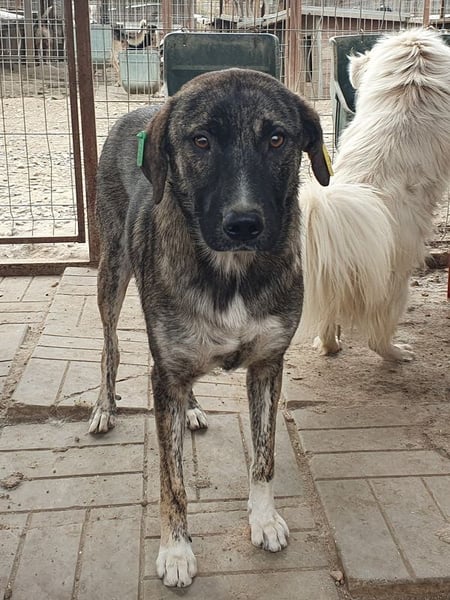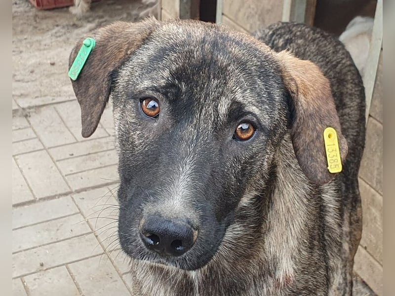 Freddy ist ein ruhiger, sanfter Junghund mit einer sehr angenehmen, zurückhaltenden Art. Als wir ihn besuchten, stand er ruhig bei uns, nahm vorsichtig Leckerchen vom Boden und ließ sich anfassen. Er blieb dabei stets freundlich, auch wenn man merkte, dass er die Berührungen noch nicht wirklich genießen konnte. Seine Unsicherheit ist verständlich – das Leben im Tierheim ist laut und unruhig, und Freddy lebt dort mit einem sehr dominanten Rüden zusammen, was ihm das Zusammenleben deutlich erschwert. Trotzdem zeigte er keine Anzeichen von Aggression, sondern blieb einfach freundlich und ruhig.