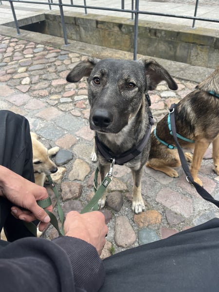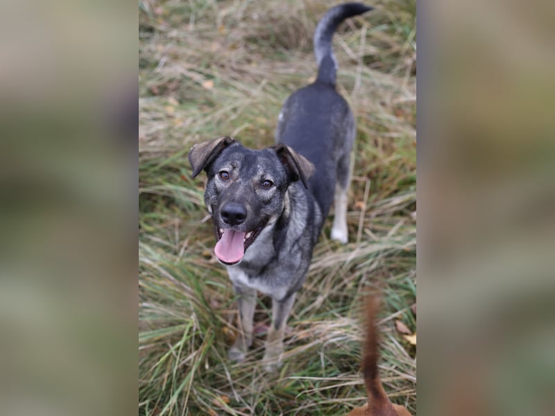 Moritz wurde ursprünglich gemeinsam mit drei weiteren Welpen auf einem Feld nahe Bukarest gefunden. Eine junge Frau entdeckte die kleine Gruppe mitten im eisigen Winter und bat uns um Hilfe, ohne Unterstützung hätten sie kaum eine Überlebenschance gehabt. So kam Moritz mit etwa vier Monaten in unser Partnertierheim und durfte Ende Juni auf eine Pflegestelle nach Deutschland reisen. Jetzt sucht er von hier aus sein finales Zuhause. Moritz ist – wie wir liebevoll sagen – eine Mischung aus zarter Pflanze und wildem Raudi. Er hat eine sanfte und teils unsichere Seite, kann aber genauso verspielt, neugierig und mutig sein. Auf seiner Pflegestelle lebt er mit zehn teils wechselnden Hunden unterschiedlichen Alters zusammen und zeigt sich dort als gut sozialverträglich. Er geht Konflikten grundsätzlich aus dem Weg, auch wenn er manchmal pubertär seine Grenzen austestet und fordert gerne zum Spielen auf. Moritz ist insgesamt ein aktiver, fröhlicher Junghund, ist dabei aber nicht überdreht. Er genießt ausgiebige Spaziergänge, findet aber auch gut zur Ruhe und macht auch ruhige Tage super mit. Im Haus ist er entspannt und zieht sich hier auch gern in sein Körbchen zurück. Manchmal braucht er noch ein bisschen Anleitung dabei. Autofahrten verschläft er einfach und ist hier bereits sehr routiniert.. An der Leine läuft Moritz bereits ordentlich, momentan übt er die Orientierung am Menschen und zeigt sich dabei als lernfreudiger, aufmerksamer Begleiter, der gefallen will. Er war bereits auf zwei Hunde-Seminaren mit, auch im Baumarkt und war hier schnell ein entspannter Begleiter. Erste Stadtspaziergänge, auch in Berlin, hat er ebenfalls schon erlebt. Hier pendelt er noch zwischen Neugier und Unsicherheit, wird dabei aber nicht völlig kopflos, sollte ihn etwas/jemand verunsichern. Für eine stark belebte Wohngegend halten wir ihn derzeit noch nicht geeignet. Viel wird allerdings davon abhängen, wie souverän sein zukünftiger Mensch ihn in solchen Momenten führt und wie er weiter trainiert wird. Trotzdem wünschen wir uns ein ruhiges Zuhause für ihn. Moritz braucht generell einen Menschen an seiner Seite, der ihn mit ruhiger Klarheit begleitet, ihm Sicherheit gibt und ihn nicht durch Mitleid in seiner Unsicherheit bestärkt. Denn er bringt bereits jetzt das Potential mit, seine Unsicherheiten weiter abzulegen – erste Schritte in diese Richtung macht er bereits und dies sollte unbedingt weiter gefördert werden. Besonders hilfreich wäre ein bereits vorhandener, souveräner Ersthund, an dem Moritz sich orientieren kann, denn das tut er bei uns sehr. Das wünschen wir uns für sein neues Zuhause! Mit vertrauten Menschen ist Moritz verschmust, anhänglich und verspielt. Er liebt das Kontaktliegen und drückt sich auch in für ihn mal stressigen Situationen an seine Bezugsperson. Bei neuen Menschen ist er grundsätzlich erstmal skeptisch und braucht Zeit, um Vertrauen zu fassen. Beim ersten Kennenlernen wird er also nicht direkt freudestrahlend auf jemanden zu laufen. Er gewöhnt sich in der Regel schnell an Besuch, heißt, er liegt bspw. entspannt mit im Raum, sucht dabei aber nicht aktiv den Kontakt. Das Alleinbleiben wurde mit ihm bereits behutsam aufgebaut. Mit den anderen Hunden bleibt er bereits 2-3 Stunden ruhig Zuhause und verschläft die Zeit einfach. Nach einem Umzug kann es durch den Ortswechsel sein, dass der Trainingsstand noch mal gefestigt oder wieder aufgebaut werden muss. In seiner jetzigen Lebensphase braucht Moritz viel Struktur und Geduld und demnach zu Beginn eine (für den Fall) mögliche Rund-um-die-Uhr-Betreuung. Wie alle Junghunde steckt Moritz gerade mitten in der Pubertät - eine oft herausfordernde Zeit, auch wenn er sich sehr umgänglich zeigt. Seine neuen Menschen sollten verstehen, dass ein junger Hund nicht nur Freude und Energie mitbringt, sondern auch Führung und klare Regeln braucht, um sich zu einem ausgeglichenen Hund entwickeln zu können. Bewegung, Spiel und gezielte Ruhephasen sind gleichermaßen wichtig. Optisch lässt sich schwer sagen, welche Rassen in Moritz mitgemischt haben. Da er aus Rumänien stammt, ist es möglich, dass er später noch wachsame Eigenschaften zeigt – aktuell verhält er sich jedoch nicht wachsam. Moritz ist ein Hund für Menschen, die gerne draußen in der Natur unterwegs sind, Lust haben, einem jungen Hund die Welt zu zeigen, und bereit sind, sich auf seine Persönlichkeit einzulassen statt nur Erwartungen an ihn zu stellen. Er ist kein souveräner Hund, sondern sanft und braucht Menschen, die mit beiden Beinen im Leben stehen und ihn dabei begleiten, mutiger zu werden. Wer ihm Zeit, Führung und Vertrauen schenkt, wird einen wunderbaren Mitbewohner an seiner Seite haben. Wir freuen uns auf ernstgemeinte Anfragen und sind gespannt, wo Moritz sein passendes Zuhause finden wird.