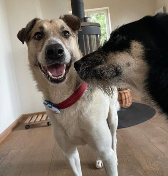 Auf ihrer Pflegestelle lebt Aliisa mit zwei Hündinnen (eine etwa Gleichaltrige und eine Seniorin) zusammen. Ihnen gegenüber zeigt sie sich nett und eher zurückhaltend. Im Haus ist sie ruhig, und bleibt in ihrem Zimmer problemlos ein paar Stunden alleine, auch ohne die anderen Hunde.