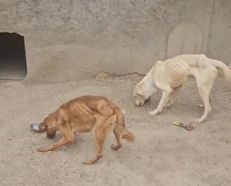 Der Anblick von Pepe und Fleur hat uns tief erschüttert! Nur noch Haut und Knochen! Welches Leben mussten sie geführt haben, um in eine solch’ erbärmliche körperliche Verfassung zu geraten? Um ihren Gesundheitszustand zu überprüfen, lies Cristina beide Hunde in einer Tierklinik untersuchen. Trotz ihres schlimmen Aussehens sind sie zum Glück in einem recht guten gesundheitlichen Zustand und werden nun von Mitarbeiterin Vicky wieder aufgepäppelt. Verteilt über den Tag erhalten Pepe und Fleur nun mehrmals kleine Portionen Essen, auf die sie sich stürzen. Ganz allmählich wird so ihr normales Gewicht wieder aufgebaut.