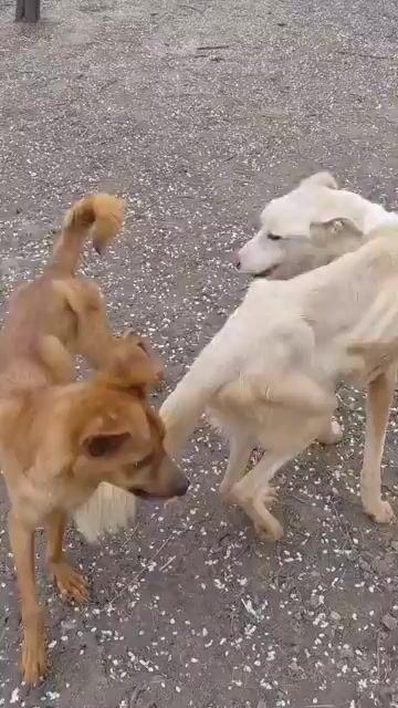 Zunächst sah es so aus, als würde ein Anwohner einen der Hunde aufnehmen. Doch dann stellte sich heraus, dass dieser lediglich die Boxen haben wollte :-( Nachdem der Mann die weiße Hündin schon herausgelassen und vertrieben hatte und gerade auch den Hund aus der zweiten Box vertreiben und die Box nehmen wollte, kam die tierliebe Frau dazu und konnte den Braunen an sich nehmen. Zum Glück wurde auch die weiße Hündin schnell wieder gefunden, und so nahm Cristina schließlich beide in ihr Shelter auf. Der braune Rüde bekam den Namen Pepe, das weiße Mädchen heißt nun Fleur.