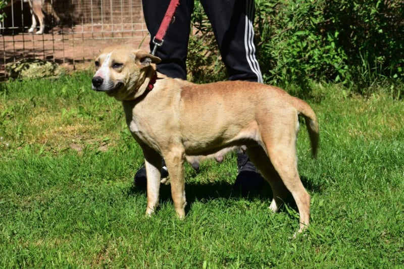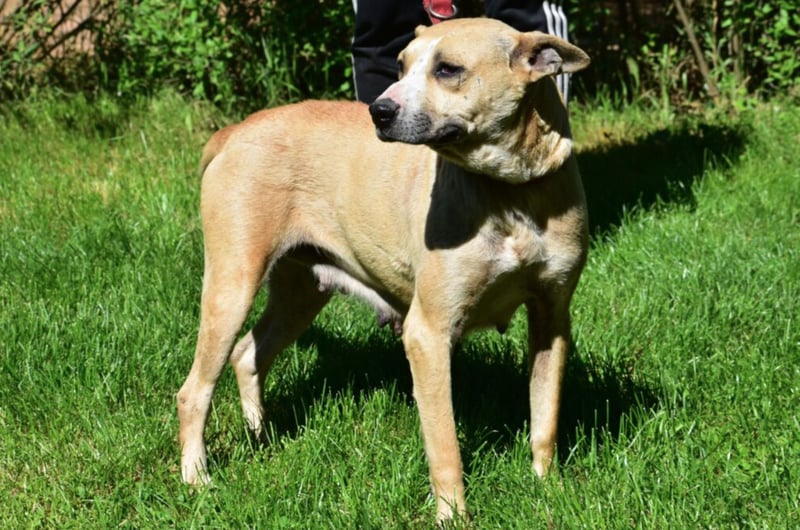 Syrah wurde von den Tierschützern aus einer Verwahrlosung in einem schlechten Zustand herausgeholt. An ihrem Gesäuge ist zu erkennen, dass sie bereits mehrere Würfe gehabt haben muss. Wahrscheinlich wurde sie als Wurfmaschine für den illegalen Welpenhandel missbraucht. Ihr Gesicht ist voller Narben. Ob sie von anderen Hunden attackiert wurde, können wir nur vermuten. Die Hündin scheint ein sehr hartes Leben hinter sich zu haben. Im Tierheim wird sie jetzt erst einmal tierärztlich versorgt und ist in Sicherheit. Wir suchen für sie ein stabiles Einzelzuhause, in dem sie endlich artgerecht leben darf und zur Ruhe kommt. Zu Menschen ist sie sehr sanft und lieb. Sie möchte gerne vieles nachholen.