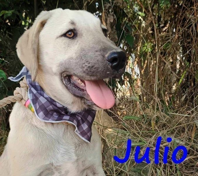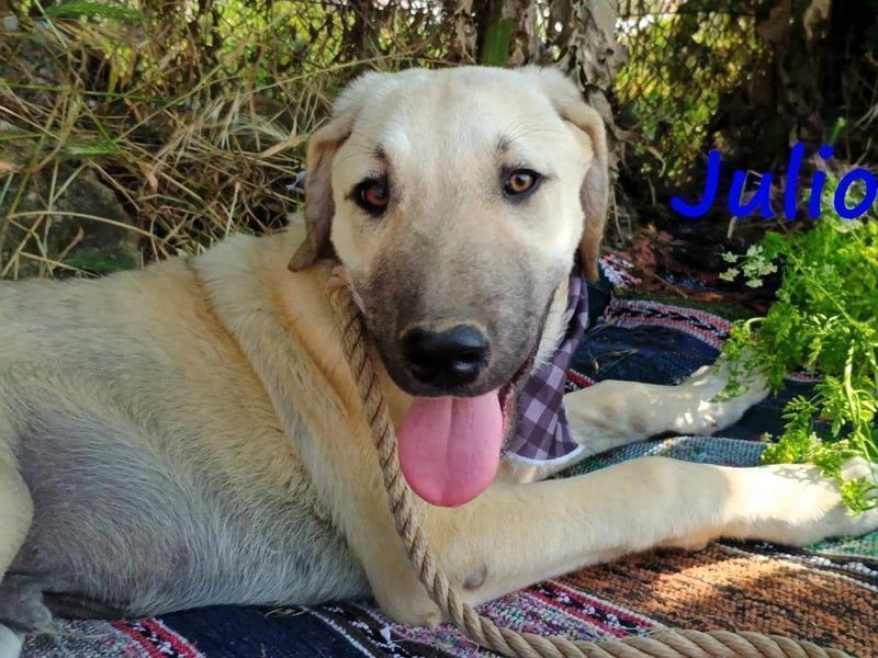 Julio wurde zusammen mit seinen Geschwistern Denis und Michelle2 auf dem Müllplatz geboren und lebt auch noch dort. Er mag die Menschen und andere Hunde. Wie auch seine Schwester Michelle2 kann er anderen Welpen gegenüber etwas dominant sein.