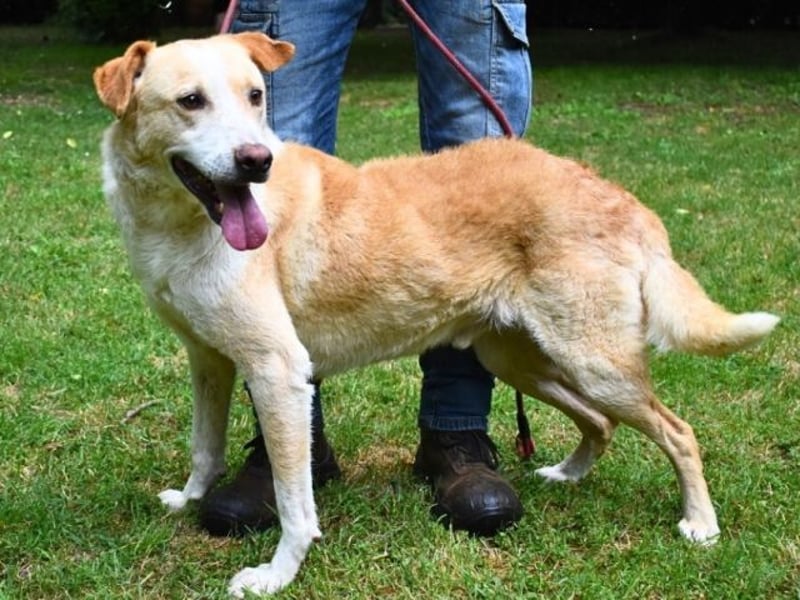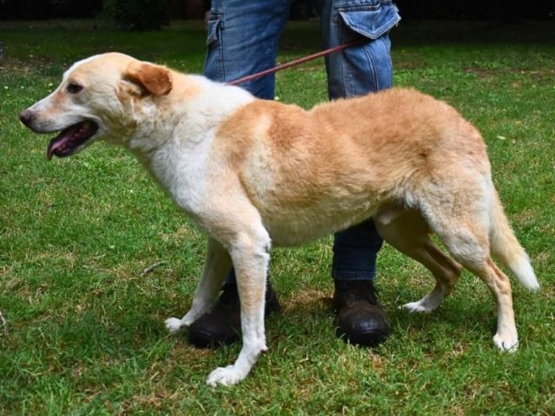 Ich bin ein hübscher Kerl mit meinem hellfarbenen Fell und mit 55 cm Schulterhöhe etwas kleiner als mein Bruder. Mein Hobby ist Ausschau halten nach netten Menschen, die kommen und mich hier rausholen. Auf diese Weise bringe ich manchen Tag herum, bisher leider vergebens. Dabei bin ich doch einer, der gern Liebe gibt und gestreichelt wird. Und der von ganzem Herzen dankbar wäre, ein eigenes Zuhause zu haben. Bin halt ein ganz normaler, netter Rüde auf der Suche nach seinen Lieblingsmenschen.